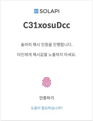 회원 정보에 등록되어 있는 전화번호 혹은 인증 받고자하는 전화번호로 HASH 코드가 담긴 URL 이 발송됩니다. (https://coolsms.co.kr/verify/C31xosuDcc 와 같이 생겼습니다.) 이 URL 을 눌러 인증 화면으로 가서 인증하기를 눌러주면 인증이 완료됩니다.