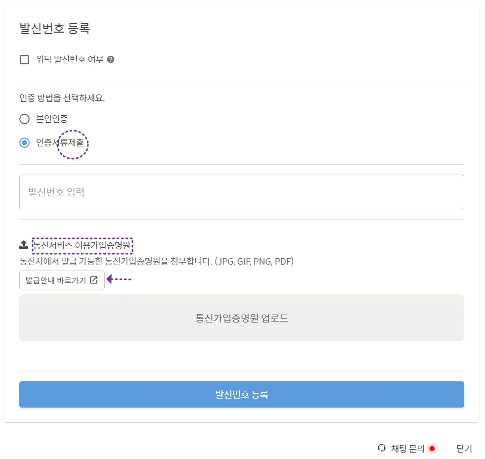 서류 인증 제출의 경우